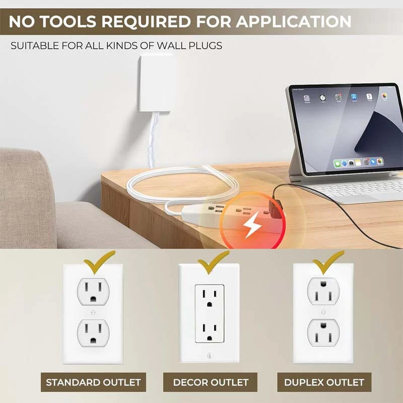 ćCOMPLETE WITH CORD CONCEALER KITćOutlet concealer extension cord includs ultra-thin outlet concealer kit. Equipped with double-sided removable adhesive strips and cord clips, it ensures a seamless and tidy installation, securely fastening the cord to your wall.